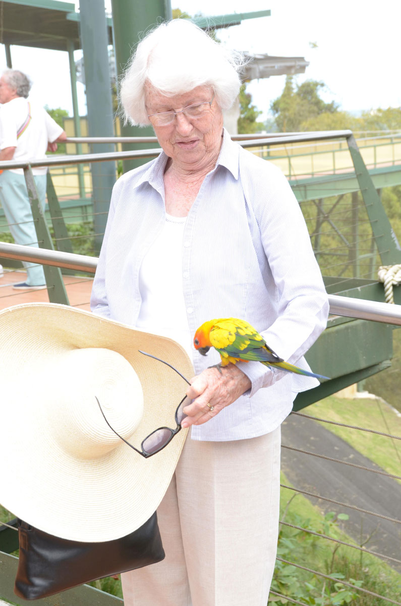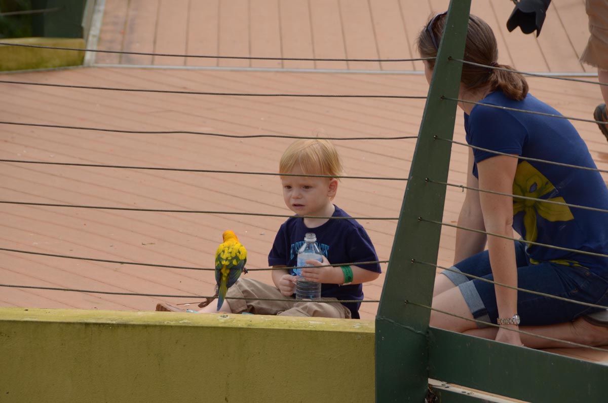 Right after this picture, this little parrot hopped on the boys shoulder and was rewarded with ear-splitting, bone-chilling screams, as were we all!