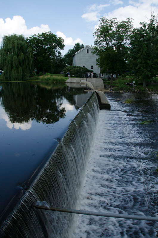 This view of the mill shows the dam rebuilt by the Friends of the Beckman Mill.