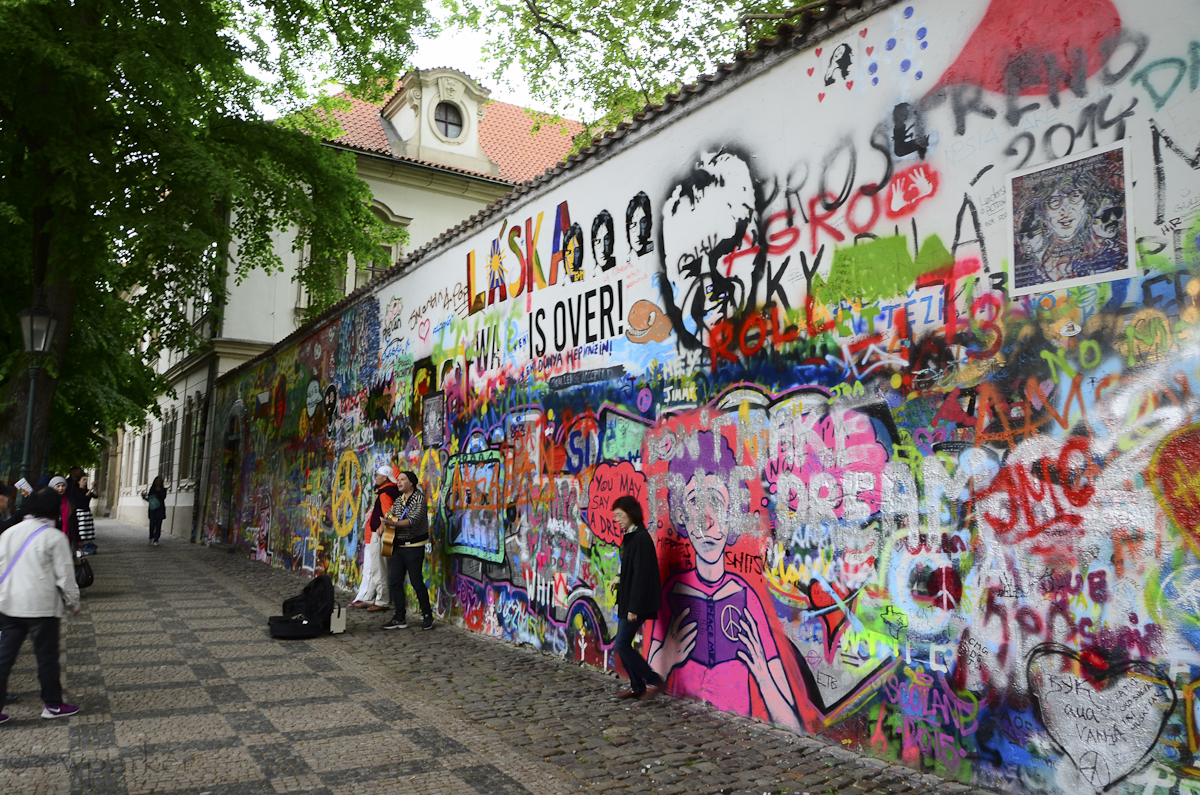 While I have you as a captive audience (you’ll have to keep reading to find the link to the next day), I would like to say something about the John Lennon Wall. What you are seeing is not the original painting of the wall. According to the guide, the wall came into being when she was a teenager (imagine about late 70s early 80s). She talked about how John Lennon’s music was like a “call for hope” for the Czech young people – a fantasy for them of someday knowing something other than being under the thumb of the Soviet Union. On the wall, people would leave messages of hope for peace, using Lennon’s lyrics and their own poetry. It remained a symbol for them even after the Soviets relinquished their control. However, about 2-3 years ago someone had the bright idea to start it over, and had the wall painted white. What you’re seeing here is a new version of the wall. Our guide talked about how bittersweet the experience of showing this to us was: She talked of being happy that the sentiments that began the wall prevail, but sad to have lost that piece of her own history. As an aside, she also encouraged us to add our own comments and messages to the wall, but I didn’t see anyone actually do that. I would have loved to go back and see this “con calma,” to read more about it and to study the messages.