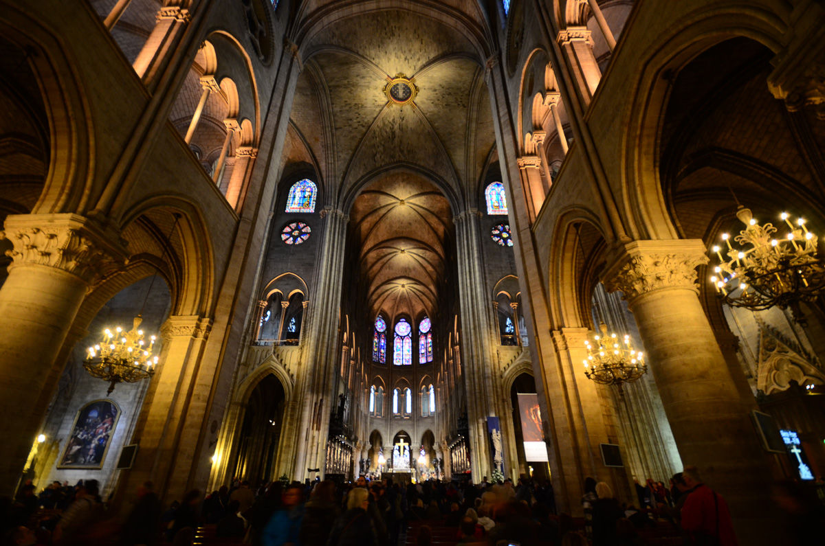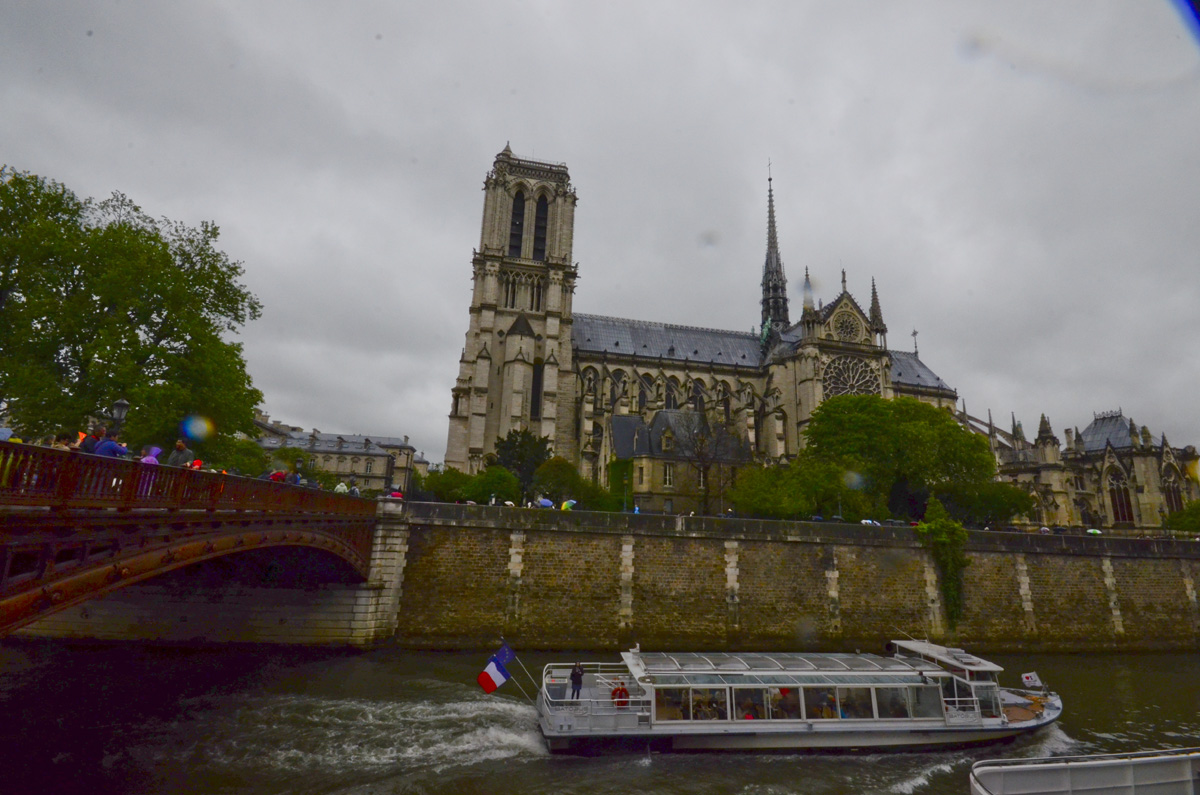 We continued our route around the city, again and again seeing evidence of crowds gathering, some in opposition to the Nationalists, at least. We drove to the Hotel de Ville (City Hall) where we got out of the bus in order to visit Notre Dame. The guide walked us across the bridge, and left us in the huge square in front of the cathedral. Joanne and I got in the line to go in for a visit. We were joined by Judy and Rod. The line seemed long, but it moved very fast. There was simply a bottleneck, the line squeezing down to single file, but no entry fee nor bag search. Inside, the cathedral was full of tourists and it was hard to get up close to anything. Nevertheless, is there anything more inspiring than a high Gothic cathedral? Not for me, and especially so once mass started and the priest’s singing resonated magnificently, swelling and growing, as only sound in an acoustically sophisticated building can!