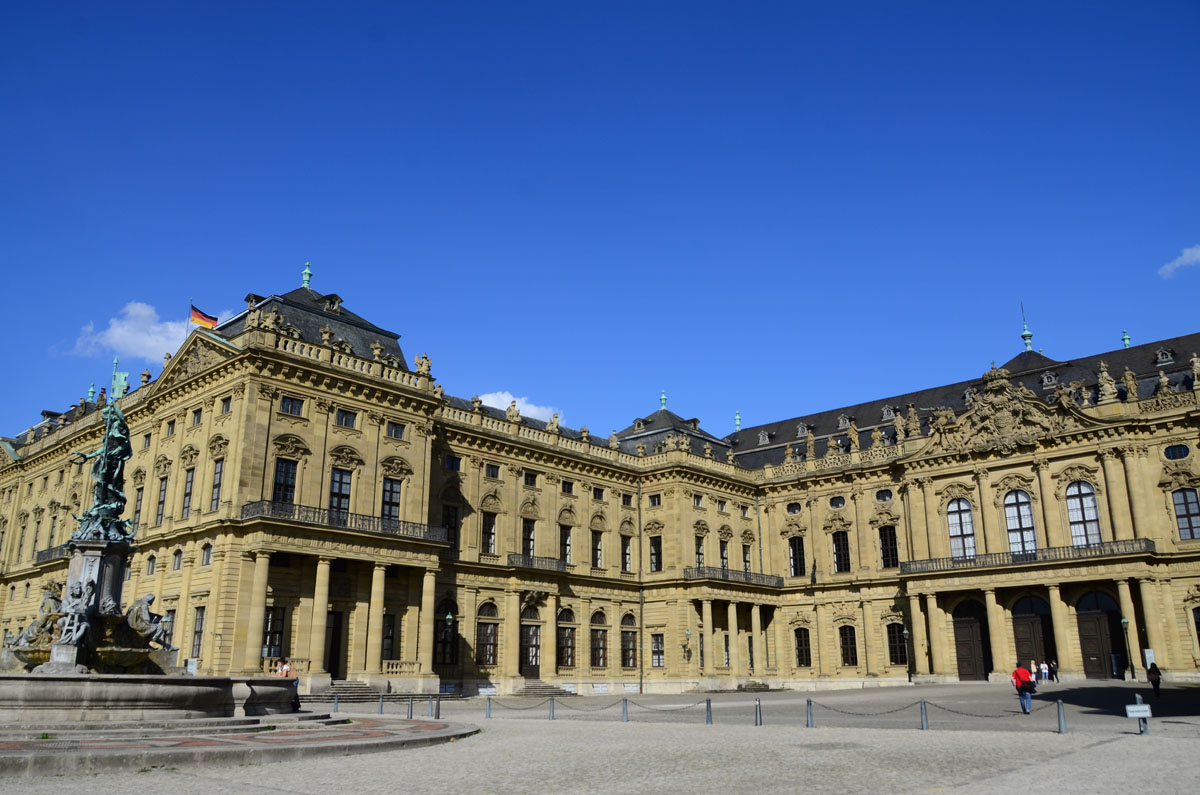 Following lunch, we re-boarded the busses and drove back up to Wurzburg to see the Residenz, the 18th century Baroque palace of the bishop-princes. So glad we did! This is an amazing palace! Do not miss it! The structure seems enormous, but I suppose it might pale in comparison to Versailles or the Hermitage. The entrance is marred by a huge parking lot that covers the square in front of the structure.