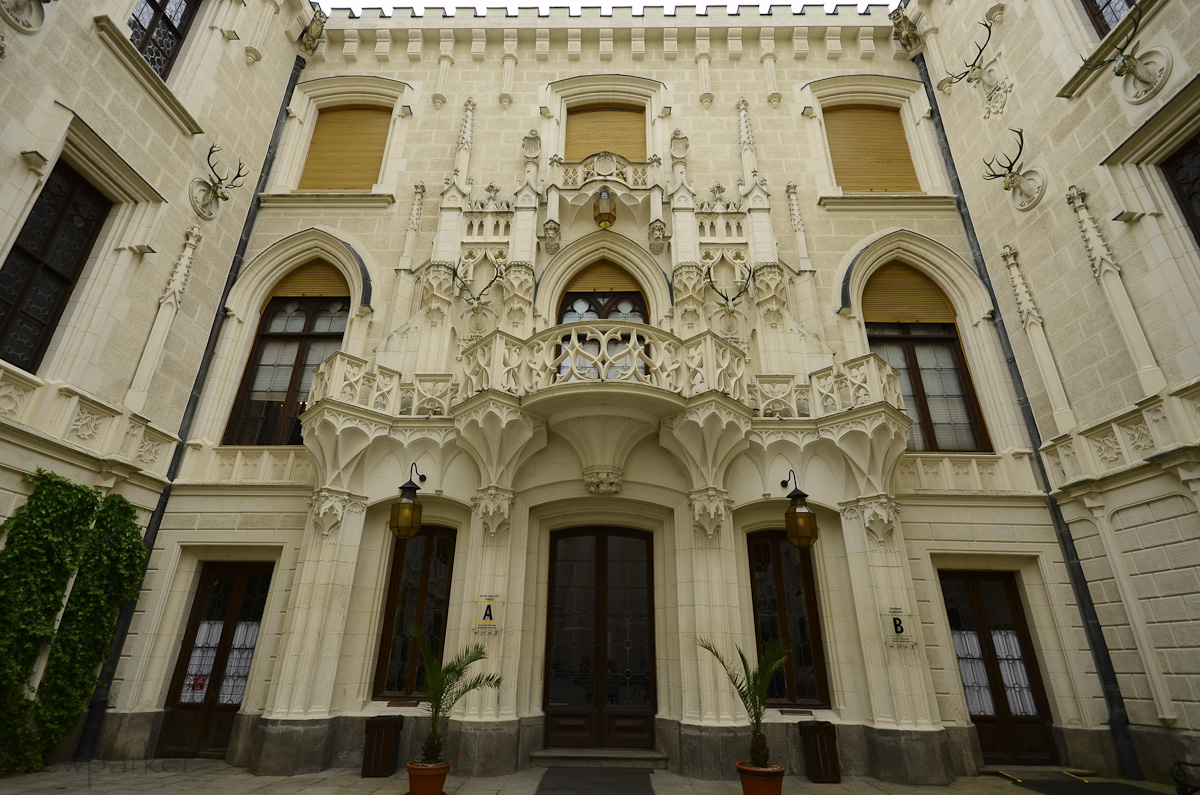 Our penultimate stop on this trip, after a 40 minute drive, was Hluboká nad Vltavou, home to another magnificent castle. The castle grounds were already crowded when we arrived just before 10:00 am. There is an English tour available, but we could not wait until 11:30 am to take it because from here we are going to the airport. We had to take the next available tour, again in Czech and for us with a written explanation in English.