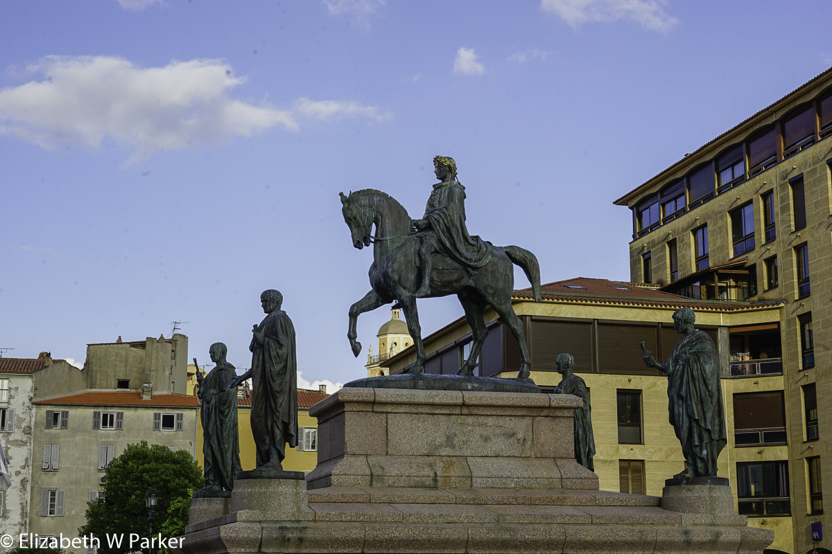 And, third, who cares about Ajaccio (however you say it)? Actually, Ajaccio is the capital of Corsica. It isn’t the best known city of Corsica or the most visited, but it is the hometown of Napoleon, and the city gets quite a bit of mileage out of that connection. Even the airport is named for him. It is located on the west coast of Corsica and has a large ferry harbor. I had so wanted to get here by boat (like my literature pals), but that will be for the next visit.