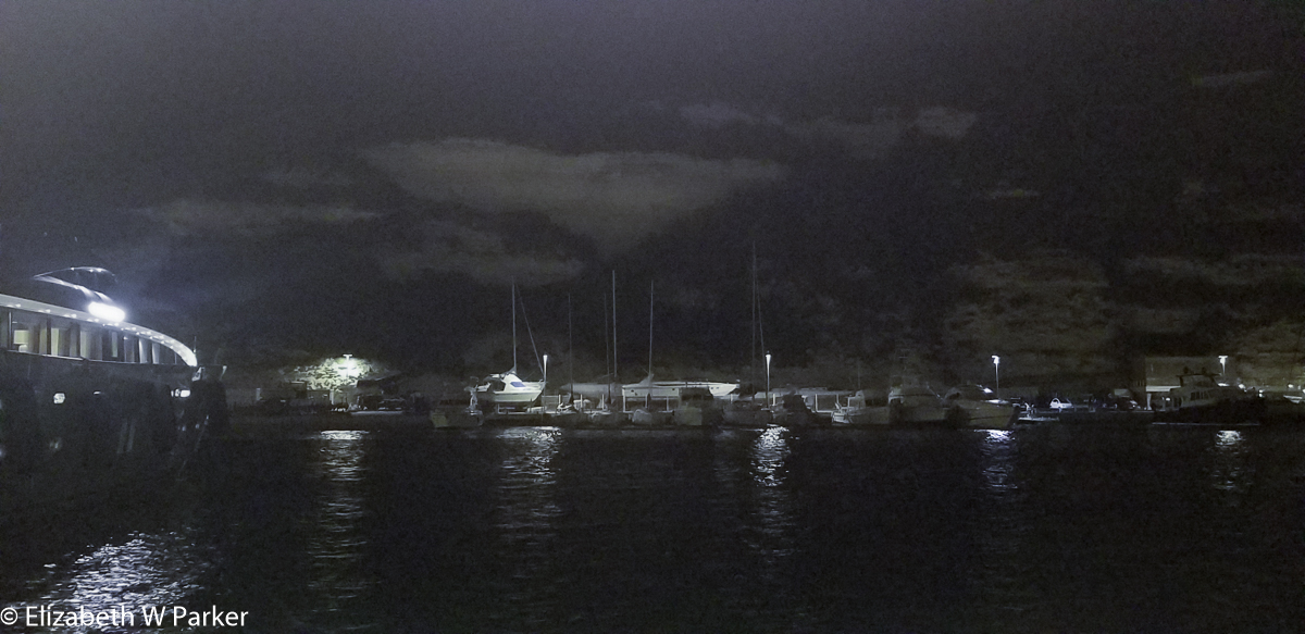 Look at the strange clouds in this picture of the harbor at Bonifacio at night…Actually, those are not clouds, but patches of the white limestone of the cliffs that rise up precipitously from the water!