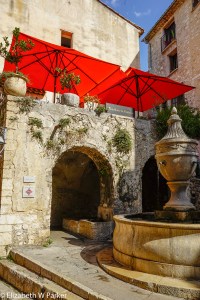 Saint Paul de Vence is a little town, chock full of wonderful art galleries and a great deal of outdoor sculpture, with a medieval village as backdrop. The contrast is enlivening! We enjoyed our walk through the narrow streets, the buildings are well-preserved from their medieval roots, people were friendly and the tourists numerous, but well-behaved. We loved looking in the windows of the galleries and imagining pieces for this or that space, but we actually stopped in a fan shop and met a woman who after a busy career in costume design and production, now lives in her hometown and has taken over her grandmother’s shop, making and selling ladies’ fans.