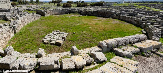 You can walk all over within the excavations, even stand on ancient column bases if you want. This kind of up-close and personal encounter with history is becoming rare. I am of two minds about that: For me, the preservation of ancient civilizations is crucial to maintaining an understanding of the history of our world. But, in a country where ancient Roman ruins are so prevalent, some of these sites, off the beaten tourist routes, may not be important enough to need to preserve in pristine condition. As a visitor, the opportunity to walk on the same stones that ancient peoples trod is a special treat. I felt guilty about it, but I did walk all over this site, thankful for the opportunity.