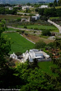 Alberobello, Cisternina, Locorotondo and Martin Franca are in the Itria Valley, a region of old olive trees, in an area referred to as the Murgia dei Trulli. These are the towns where you will see the trulli. You can see them easily in Alberobello, where the trulli make up whole neighborhoods, but scanning the countryside from any of the villages perched up on the hills, the typical, whimsical conical roofs are visible, dotting the landscape. (I will talk about them more in Part I when I describe the visit to Alberobello.)