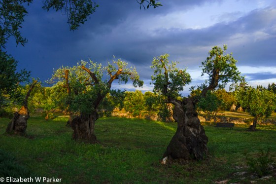 Tuesday morning (May 7th), I got up and out early to walk among the olive trees and explore the farm before breakfast. I had so much fun photographing the olive trees. I didn’t need to look far to find an interesting specimen. Each one was like a person, with its own personality. And, each was a work of art. Already a huge fan of the old olive trees (Actually, I am a huge fan of old trees, period.) walking among these characters gave rise to all kinds of imaginings, the most useful of which was the idea to do a special segment of this blog just on the pictures of them. Please click the link, take a look and let me know if you find them as enchanting and endlessly fascinating as I do! [Here’s the link to the Olive Trees gallery]