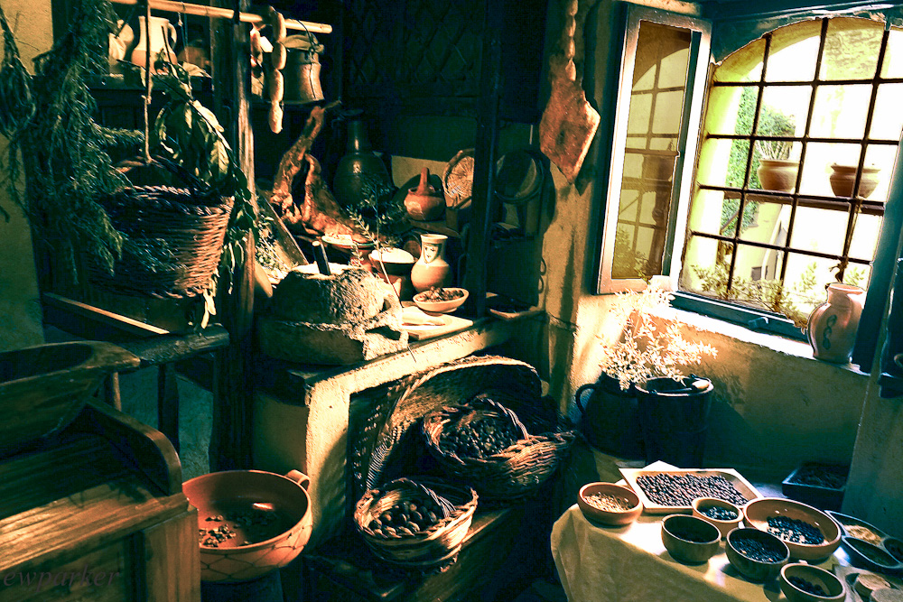 This display was set up in the living quarters created above the store, within the walls of the ancient Theater. An example of what medieval homes would look like.