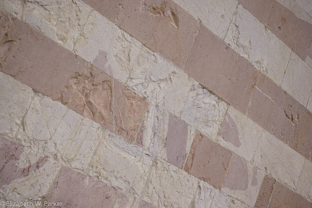 With Laura’s excellent, sometimes comical, commentary we walked down through the medieval buildings, marveling at traces of the ancient Roman city as we learned about the history of the town. Our first stop was the Cathedral of Saint Rufino, where Saint Francis was baptized, and where we saw a crucifix with the image of a living Christ (a manifestation of early Christian theology in which Christ was considered completely divine and therefore not to have suffered in the flesh when he was crucified). Another interesting feature of this church is that through plexi-glass windows in the church floor one can see the stones of the ancient Roman forum, dating from the 1st century BCE.