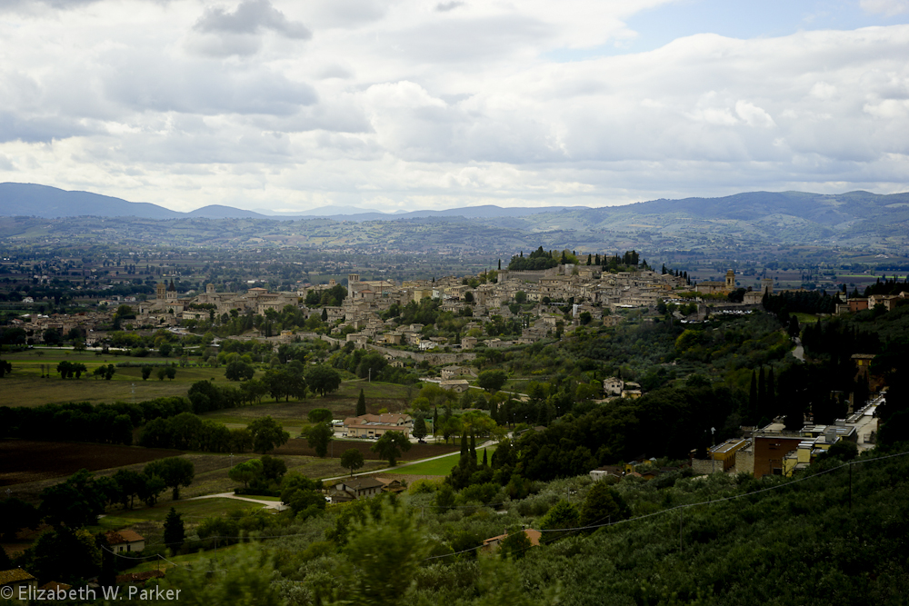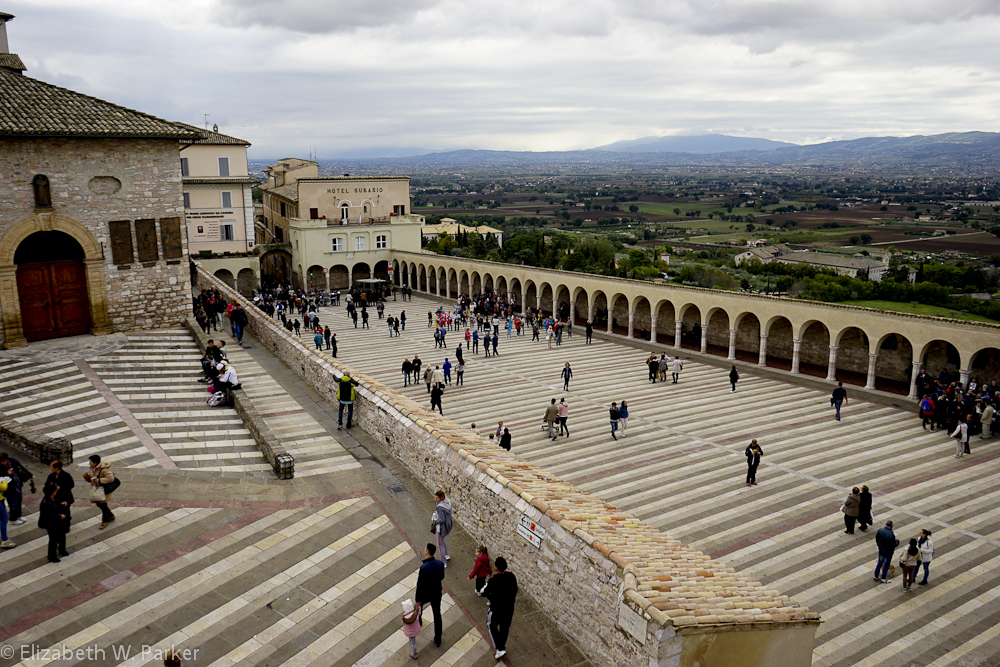 Today the weather is better: No rain is forecast, though the sky is rather heavily overcast. We were driven to Assisi, meeting our city guide, Laura, at the top of the city.
