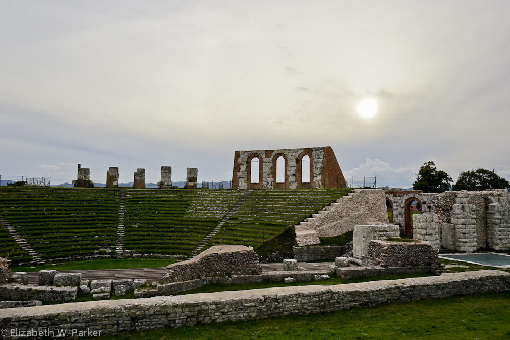 The final excursion for the day was a walk to see the Roman theater remains. Clearly visible from the piazza in front of the Palazzo de Consoli, the walk was very easy and took us through the town. It was fun to walk along those old streets and see the life of an Italian Friday evening.