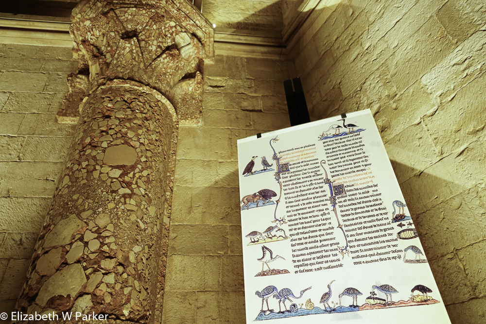 There was a display in the castle based on the book that Frederick II wrote on hunting with birds. This extremely learned and cultured man was a master of falconry. Pages from the manuscript, illustrated in the manner of old Latin texts is accompanied by modern paintings of falcons and other birds of prey.