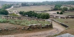 My interpretation is that the ride itself is some kind of penance, or the vow behind the ex voto. As if it weren’t stirring enough to hear the hoof beats of 200 horses running at close range, there are other spectators firing guns into the air to add to the general bedlam. Read more about it and see the clips and pictures of the races at the link I gave you above. There are also YouTube videos. At the site itself, there are also pictures. That long, low, roofed and windowless building I mentioned earlier? That is the place where the horsemen congregate and organize themselves during the festival. The horses, at least in modern times, are stabled in their own area, away from the confusion and with a veterinarian on site!