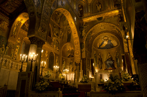 The interior of the Palatine Chapel of the Royal Palace in Palermo.