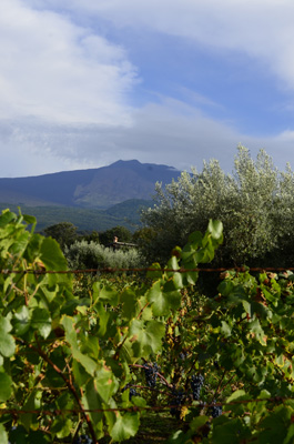 Vineyard (with red and green grapes) with Etna as the background!