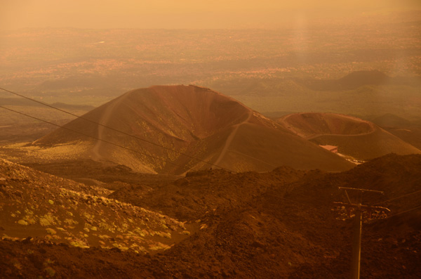 On the way back down in the cable car our windows had this orange tint. They produced a nice effect when looking at these two smaller craters.