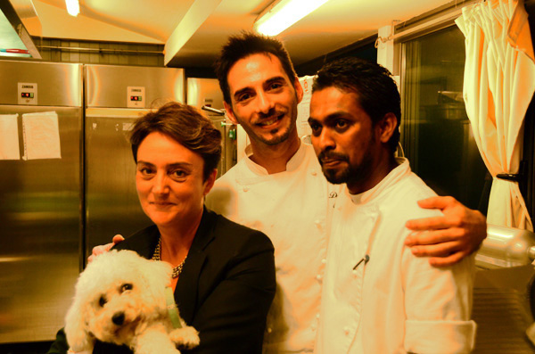 Rosaria Quartucci with her chef David and his right hand, at Villa Carlota