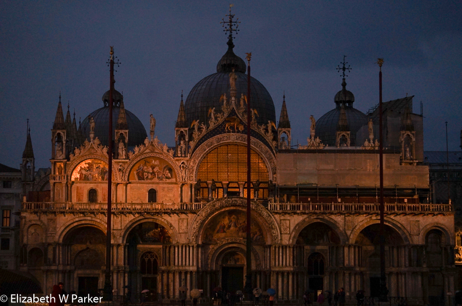 Finally, the good weather has broken. We arrived in Venice and were dropped off at Piazzale Roma. Within minutes it started to rain, and it didn’t let up for the rest of the day. We were walking from there to our hotel, which was near San Marco. It was supposed to take 24 minutes, and it might have on a good day. But in the rain, poked by umbrellas, through streets packed with other tourists, it was neither easy nor pleasant. We arrived at the hotel wet, grumpy and tired.