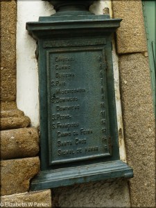 One of the unforgettable things I saw in Guimarães was this green box on the side of a church. In the detail, can you see that there is a series of names followed by a number? Can you guess what this is? We couldn’t! It is a “volunteer fireman’s code box” (I made up that name because I don’t know what the formal name would be…) The names are the parishes in Guimarães. The number represents the number of church bell peals that parish can be identified by.