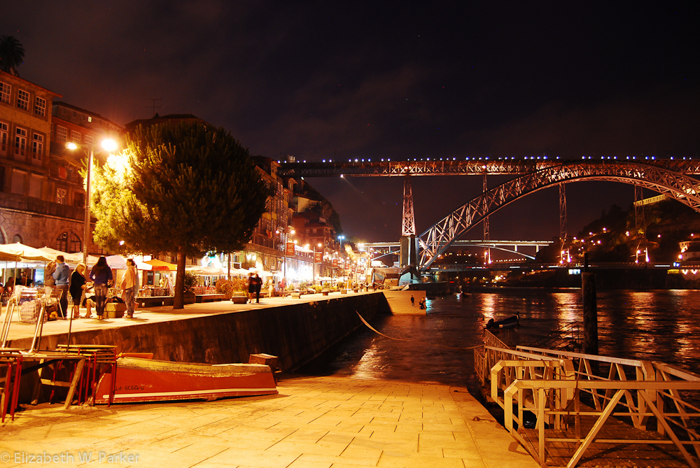 Cais da Ribeira at night