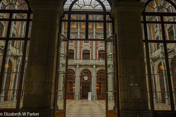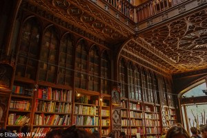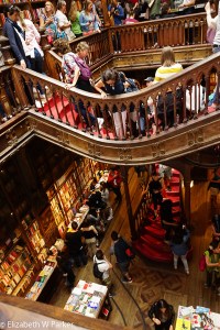 As I had a plan, and no one else had a preference, I dragged the group up to see the “J.K. Rowling Bookstore” (Livraría Lello & Irmão). No, that is not the name. But neither is the name, the name, so that name is descriptive enough that anyone will know where you want to go. It is really the bookstore where J.K. Rowling, who was living in Porto and teaching English, got her inspiration to write the Harry Potter books. So, it was a sort of pilgrimage. Gerry poo-pooed the concept and went to sit in a café, but Cindy and Greg and I bought our tickets (4 euros each) and stood in line.