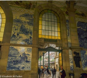 Ha! I love to be right! They were believers once they got inside. So, if you haven’t visited the Sāo Bento station, please put it on your list. Besides being out of the drizzle, the main lobby is floor to ceiling murals of azulejos. The lower level has huge murals about the history of Portugal and rural life. Along the top, on all four sides of the room, is the great frieze I told you about earlier, with the history of transportation. They were duly impressed, and I was again marveling at how the light from the huge windows with their yellow glass, seems to give a magical glow that only makes it better. (Psst! São Bento is Saint Benedict!)