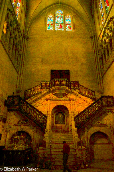 It would be easy for me to forget to mention that tomb of El Cid Campeador and his wife is in Cathedral. My excuse is that the presentation isn’t very impressive, just a metal plate in the floor. It is a big metal plate, right under the fabulous cupola, but it was also surrounded by people taking pictures so we didn’t get to examine it personally. I also have not read of the exploits of El Cid, except to know that they have been glorified and embellished in the retelling, creating a hero out of a soldier of fortune. Still, I will probably get to it before I return to Burgos. And, I must admit, as soon as I saw the cupola over the transept all coherent thought left my head!