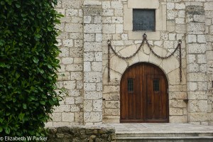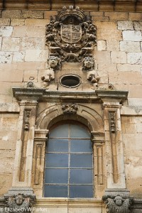 Heraldic carvings dominate the decoration of the convent buildings, but there is also a strong Mudejar element in the decoration. Mudejar refers to the work of Muslim artisans for Christian buildings. It is interesting to see how the forms and styles of Islamic art are translated to Christian uses. Islamic decoration could not use human figures, so stylized Arabic letters and geometric shapes predominate. What is interesting about finding them here is, as I mentioned earlier, that this part of Spain was never under Moorish rule. In fact, the Mudejar artisans were imported from southern Spain because of the popularity of this type of decoration.