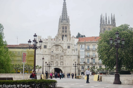 Once refreshed and more awake, we drove into Burgos, a matter of about 5 minutes. We found a parking lot just steps from the bridge that crosses the river to the Santa Maria Arch, the ceremonial entrance to the old city.