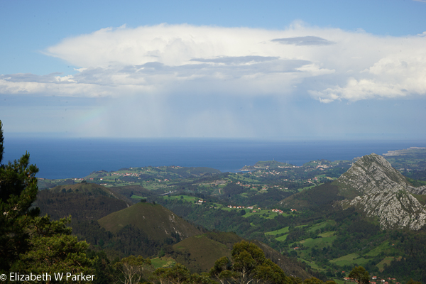 Rain out over the ocean – typical afternoon weather. From the Mirador del Fito
