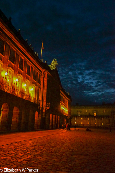 Praza do Obradoiro at night – Biblioteca and Sala Capitular of the cathedral.