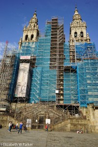 another of the languages of Spain!) The façade of the Catedral de Santiago de Compostela is on an adjacent side. Imagine our disappointment to find the façade covered with scaffolding. Then, try to imagine the disappointment of people who actually walked here to see it! (you can go to the website to see pictures of the places we couldn’t see.