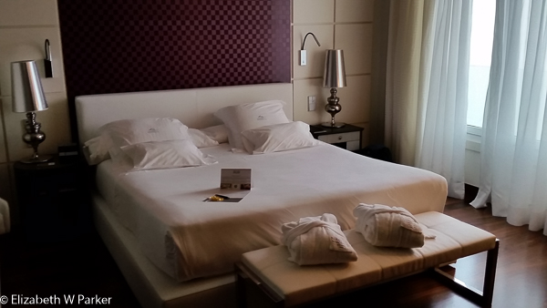 Our room at the Nagari – we were the only room with a “view” of the ria…a slice over the rooftops in from of us!