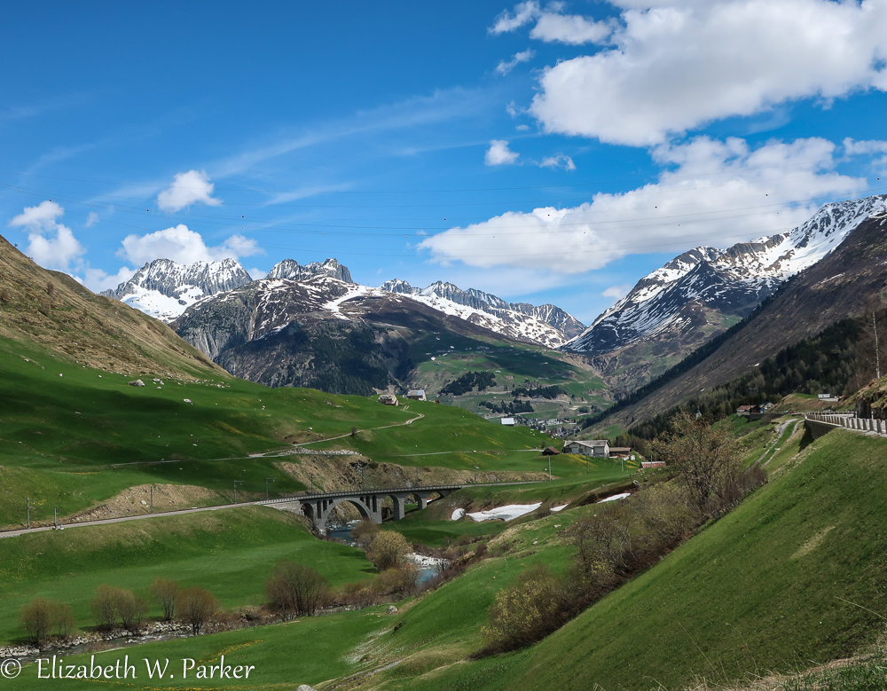 For the next two days our plans have us driving slowly from Bellinzona to Lausanne. It isn’t very far, probably no more than 4 hours, so we will have lots of time to leave the “beaten track” and take some of the Michelin Green Guides’ well-documented drives in the mountains. This first driving day we retraced our route back to Andermatt (because we want to avoid taking the rental car into Italy) and then proceeded on the Goms Driving Tour (via Michelin) through the area of Switzerland best known for all its ski resorts. The Goms (German name) is also referred to as the Val de Conches in French.