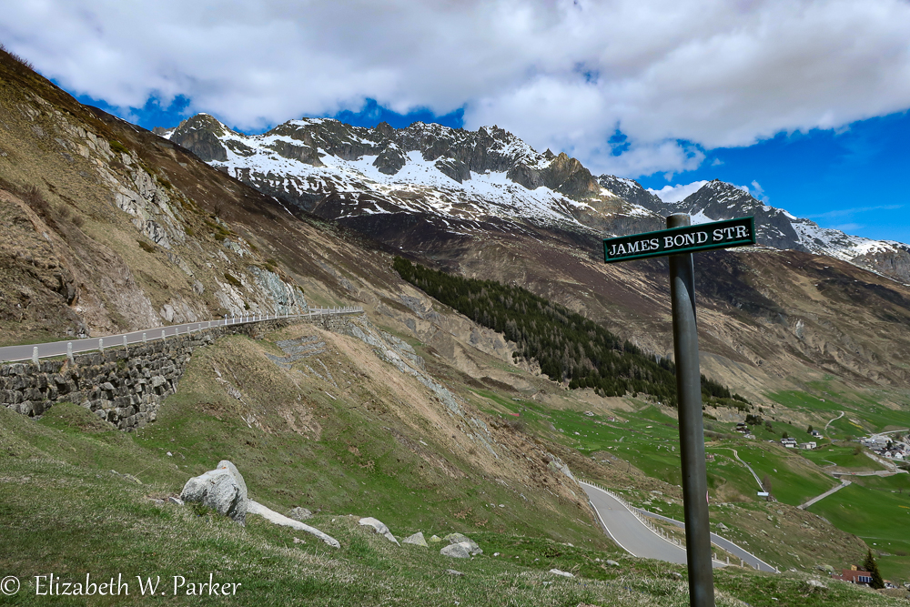 We turned up into the mountains, headed for the Furkapass. We stopped to picnic at a James Bond Point. This was our first hint of a connection between the James Bond movies and Switzerland. This particular place was the scene of a notable car chase. The sign was erected by fans to the memory of Sean Connery.