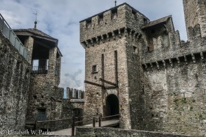 It took a little doing, but Google got us to Castello Montebello, the middle one in both height and age. It is in excellent condition. As the second of the castles it was nicknamed “il piccolo castello” (the little castle – the one down lower being the grande). The museum here covers the ancient history of the whole area, not just Bellinzona. There are some interesting artifacts, and it is very well presented but it isn’t particularly deep and all the exhibit narration is in Italian or German. The castle itself however is very interesting and you can walk all over the ramparts. Because it is higher up the mountain than Castelgrande, the views are even nicer.