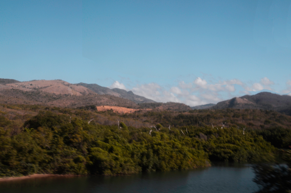 The drive to Cienfuegos took us from the north coast to the south coast on a diagonal eastward, so we cut through the heat of rural, central Cuba. Make a note: If you go, try to spend some time outside the cities. It is really a beautiful country. (Before going, I had heard that again and again, and I couldn’t think of what would make it so beautiful – I was imagining that it would look just like Puerto Rico. I didn’t think I would find it so beautiful, because I am used to this landscape. But, I was wrong. Cuba doesn’t really look like Puerto Rico at all – Not the cities, not the old parts of the cities, and not the countryside or the beaches…Puerto Rico is beautiful. Cuba is also very beautiful!)