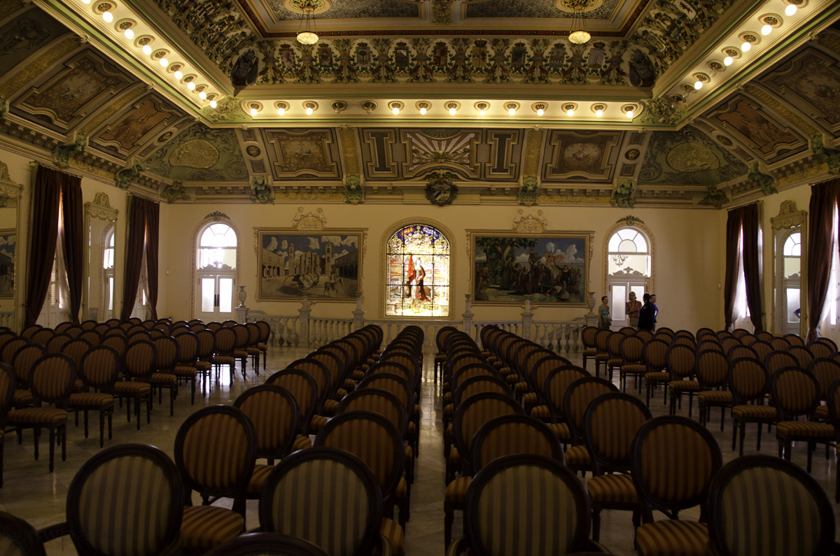 No weddings today, unfortunately, but a guard did let us in to look around and took us on a tour of the place. In a past life it was a casino (Yes! One of those gangster casino operations that Havana was famous for!) It has been restored. My guidebook is from 2007 and says it was “run-down”. Since it is anything but run-down now, we shall assume that the renovation is recent. It is impressive! The large wedding room is also used for concerts, and is called the “Sala Cervantes” according to our guide. Please, if you plan to visit Havana, put this on your Must See List. The only thing that would have made it better for me would have been to see a wedding. I think the group that went to see it on Sunday did get to see a wedding. (Can anyone confirm?)