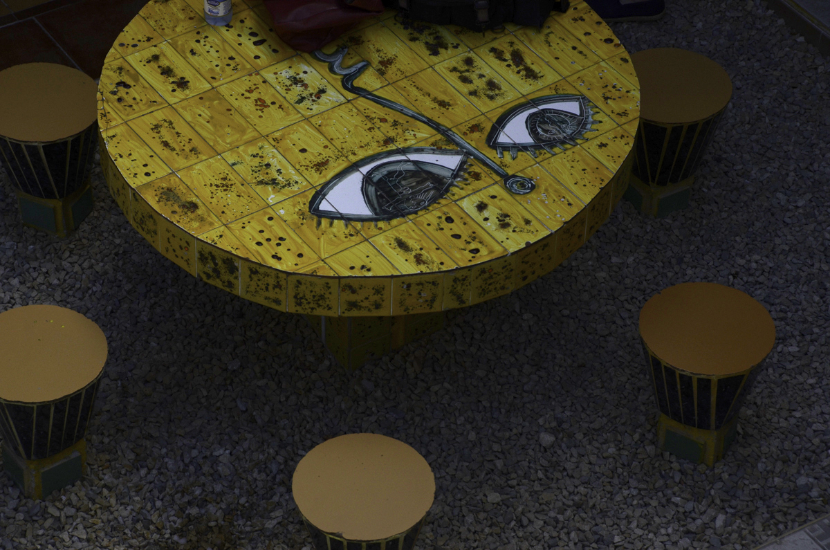 Following Massimo’s talk, we boarded our trusty bus, ably piloted by Julio, and went to visit a community group called “Muraleando.” This time we are in a neighborhood that has been transformed by the power of art. Murals, sculpture, mosaic – these elements have transformed a run-down barrio into a neighborhood for residents. The group has also converted an old unused water tank into a headquarters! Granted, not everyone considers murals and art made from trash to be an improvement, so imagine what was here before.