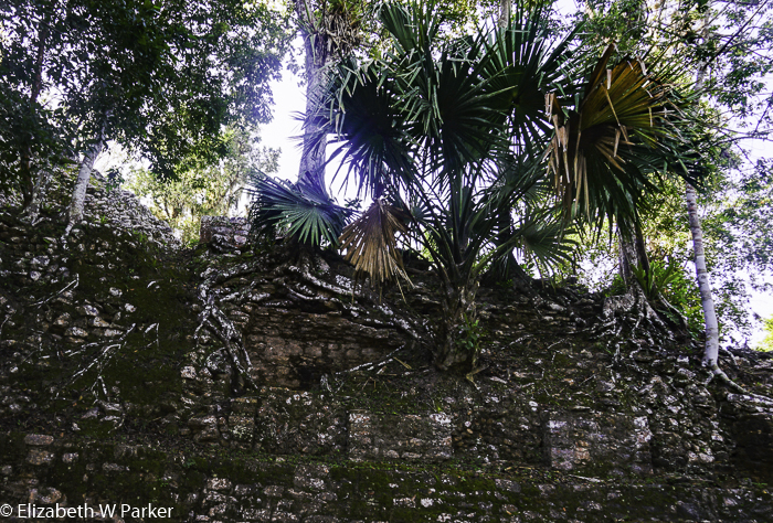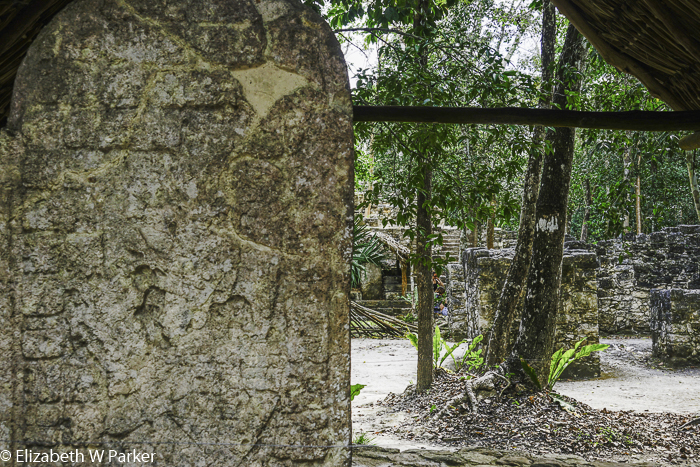 The other is the numerous stelae that dot the site. A stela is an upright stone panel with an inscription or hieroglyphs, used to commemorate an event or person. These are very common here, and many are in such a good state that they can be read…and they furnish an amazing look at the life of this city. They focus on the ruling class, and many of these refer to women rulers. (This is so often mentioned that one must wonder if it is our modern day sensibilities that cannot fathom it, more than any surprise that there may have been powerful women in Mayan culture.) The stelae here are often associated with “altars” though our understanding of that word may not be the significance they had at the time they were constructed.