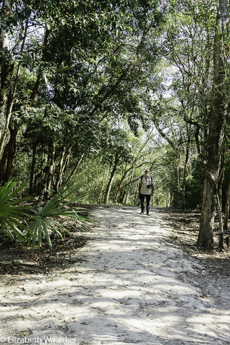 There are two characteristics of Cobá that distinguish it from other archeological sites in the Yucatán peninsula. The first is the raised, white stone and plaster roads that radiated from it to other Mayan cities in the regions. Forty-five of these roads have been discovered to date. If you’re a word nerd like I am, you’ll appreciate that the name of these roads comes in many variations! Called sacbes (as if it were English or Spanish), we also saw sacbee, sacbeob, sacbeeob, sacbob and others. I finally found an article on Wikipedia explaining that the word is Mayan. (Check out the etymology there. In fact the whole article is really interesting!)