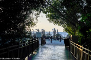 I needed to know how to tell a snowy egret from a great egret, when I didn’t have a size comparison like I do here. A snowy egret, besides being smaller has a dark beak and and yellow feet; a great egret has a golden beak and black legs. Now it seems easy, right! But what is that bird with the orange beak and the orange legs??? A great ibis it turns out…they were not identified in the brochure. So much for a white bird is a white bird!