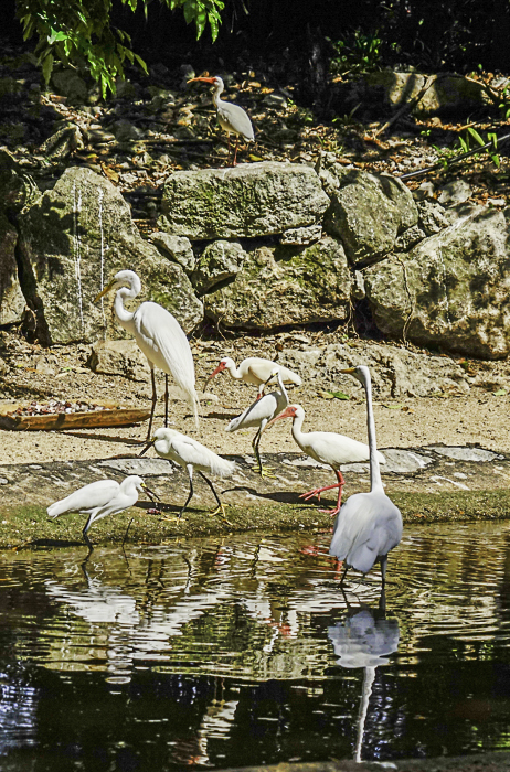 We returned to Playa Del Carmen (town) another morning and again parked near the southern end of La Quinta. This day, however, we turned and went south into a planned community called Playacar in search of the Xaman-Ha ruins and aviary. The aviary had mixed reviews online, and the negative reviews were not unjustified. However, if you are interested in seeing and photographing birds up close and in naturalized settings – this place is a gold mine! It was not that easy to get good photos because of the high dynamic range (contrast!) between sunlit areas and shade, but the birds are very close and you will not need a super telephoto to capture them. You can also easily talk to them, something I enjoy but to which they seem indifferent.