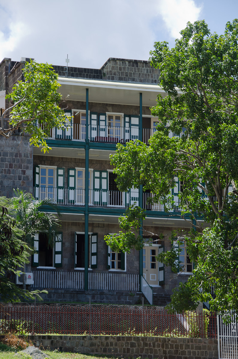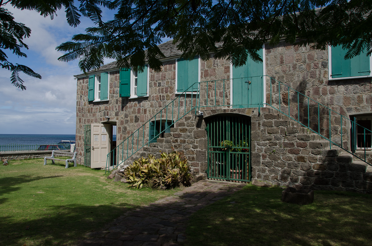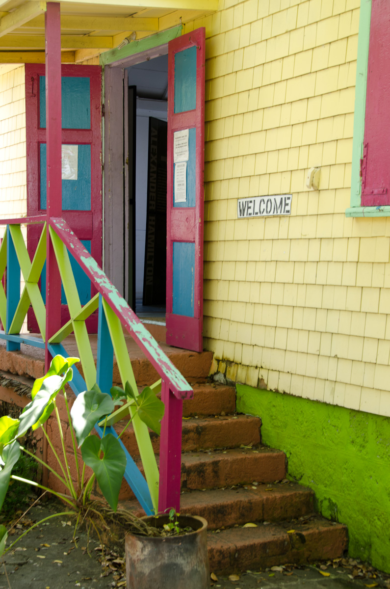 We parked along the waterfront, basically right in front of the Alexander Hamilton House, conveniently so since that was one of the places we wanted to visit. In the lower level of the house is a museum about the history of Nevis – very interesting actually. The one thing that really stuck with me is that the name Nevis, came from Columbus’s naming the island “Nieves” because the fog on Mt. Nevis looked to him like snow (or so the story went…). That actually explains why Nevis is pronounced “knee – vis” rather than “neh-vis”: An English-speaking person would interpret the Spanish “ie” as “ee”.)