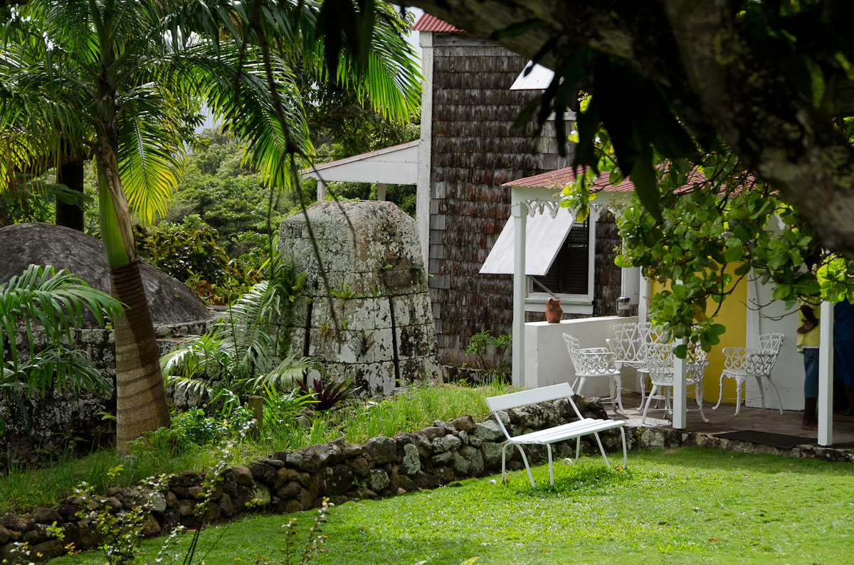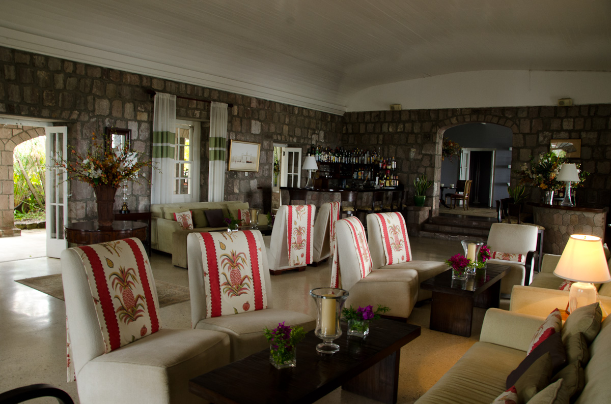 (We had visited Golden Rock already and intended to skip Nisbett on this trip.) First we found Mountpelier, my favorite! What a beautiful place. Very old colonial feel to it – enough so that you could imagine you were actually on the original sugar plantation. The common rooms were gorgeous. (Our weather was not, however. These visits were carried out in intermittent rain with grey skies all day).