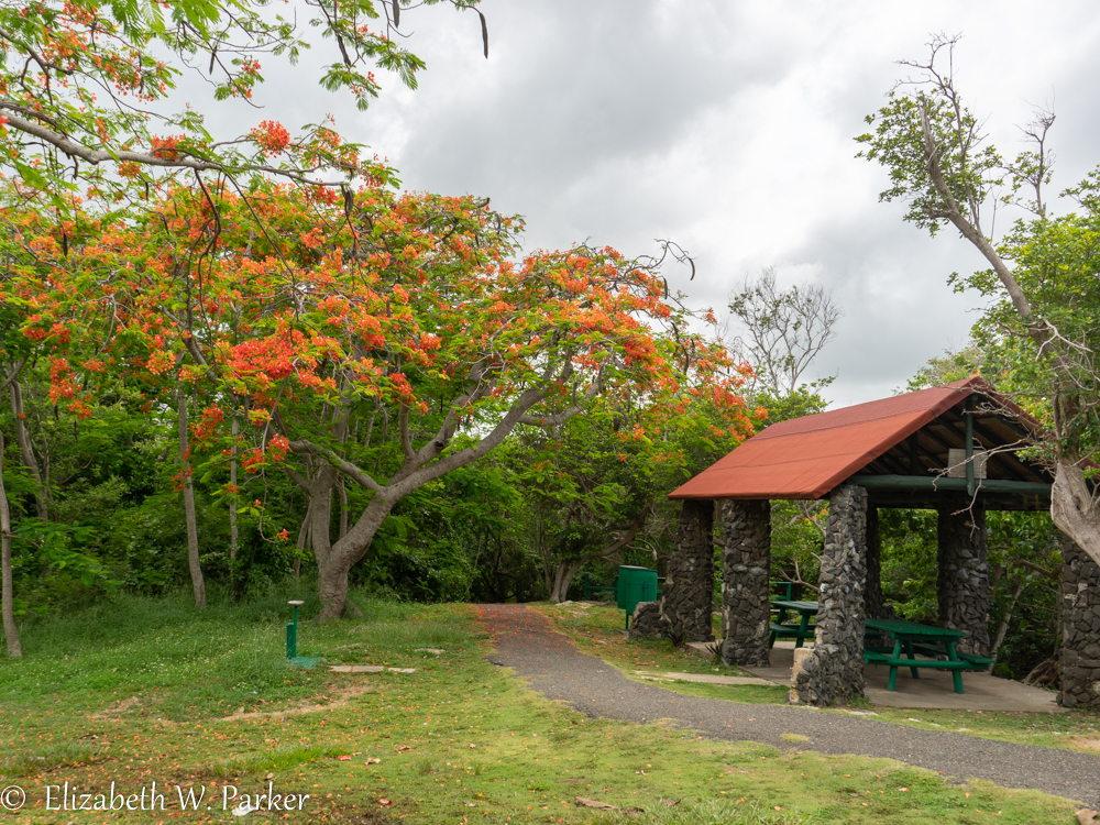 After lunch, we made a couple of tourist-stops. We found a a flamboyán (royal poinsiana tree), which is a calendar staple; then went on to see el Tunel de Guajataca. Here there is a park built around a train tunnel that was chiseled from the rocks along the shore in the late 1800s for a steam train. It is scenic, but a place I had photographed before. We also made a little detour to snap the Cara del Indio.