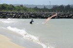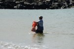 The water has formed a series of pools behind the rocks in front of the beach. Though protected from the force of the waves, bathers were enjoying the spray and the foam in the relative calm of the pools. Part of the wall that protects the lighthouse from beach goers had collapsed, so we (and others) took the opportunity to climb up onto the rocks to try and get to the lighthouse which was just above us. We could not get to the lighthouse, because of the vegetation protecting it, but the views of the beach and the waves from the rocks above was thrilling and even a little scary!