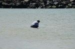 Our walk along the shore with the fisherman took us out to the end of a long structure that guided a river into the ocean. At the end we came upon a pair of women, fishing for blue crabs. Here was another learning experience, but sadly no photo essay for you on the joys of fishing for blue crabs – though I can offer you this picture of the targeted organism.