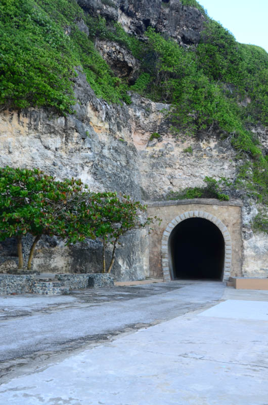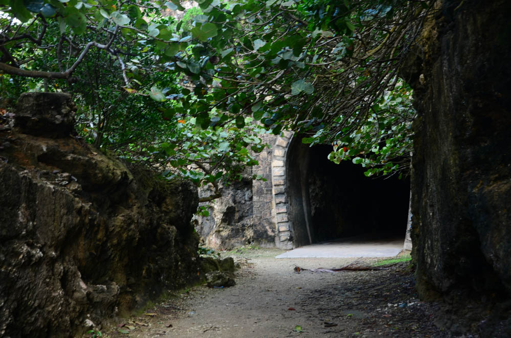 Once off the expressway, the road, though still good, now becomes a long series stretches between stoplights. We decided to get off near Guajataca (pronounced “goo-ah ha TAH cah) to visit an old railroad tunnel. Apparently once upon a time, there was a railroad that went around Puerto Rico. Though the tracks are gone, you can still discern the path the train took through the tunnel and along the coast to the west.